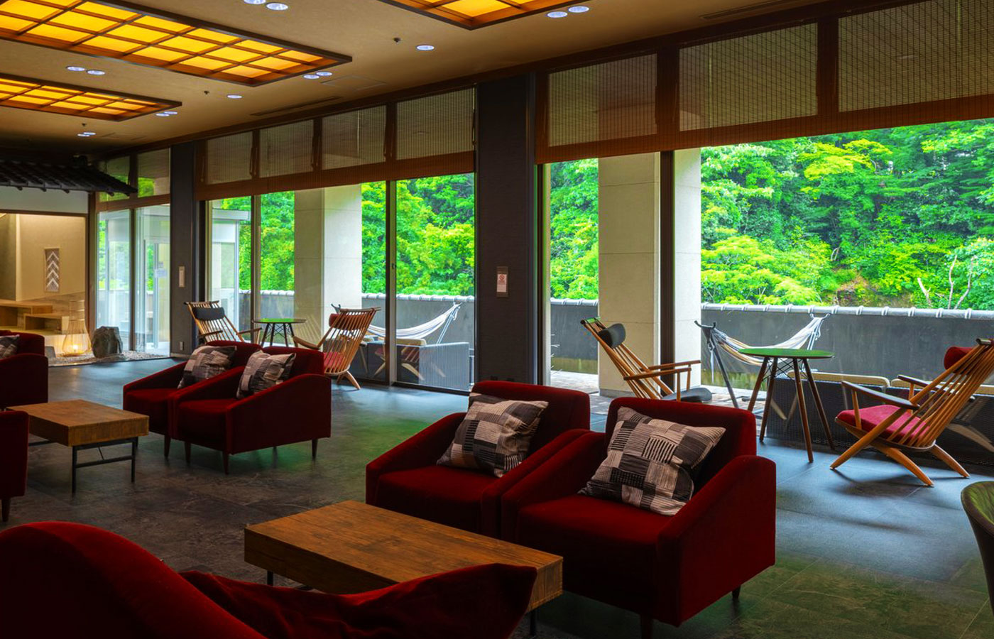 ロビー&テラス ロビーで楽しめる日本酒の飲み比べサービス♪加賀の地酒を味わってみてください。
