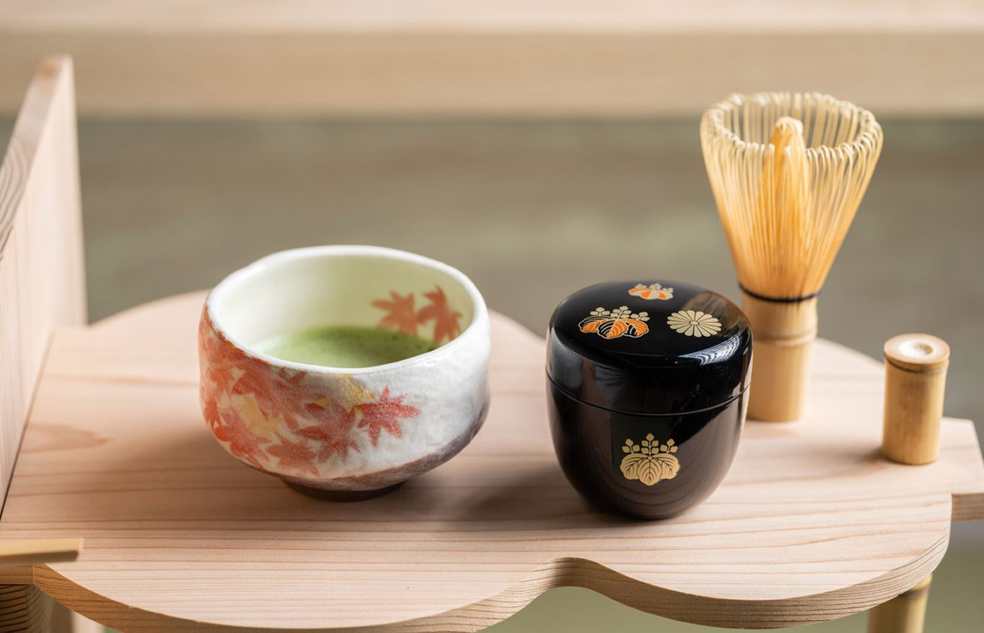 好きなお茶碗と茶筅を選んでいただいたあと、作法も自由お客様自身のスタイルで日本の伝統、ゆっくりとした時間をお楽しみください。