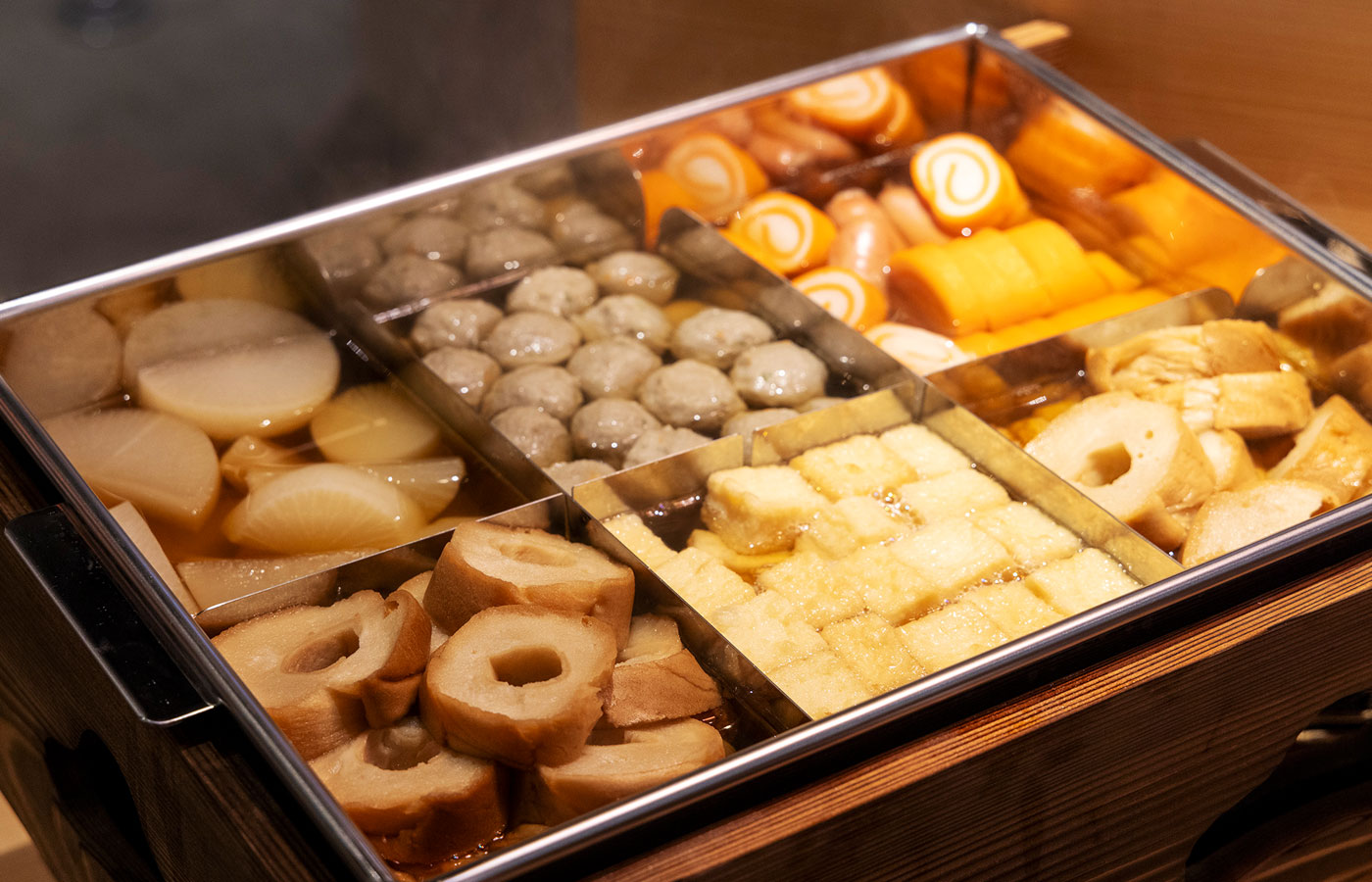 郷土料理の金沢おでんなど多彩なお料理はライブ感あふれる会場にて、