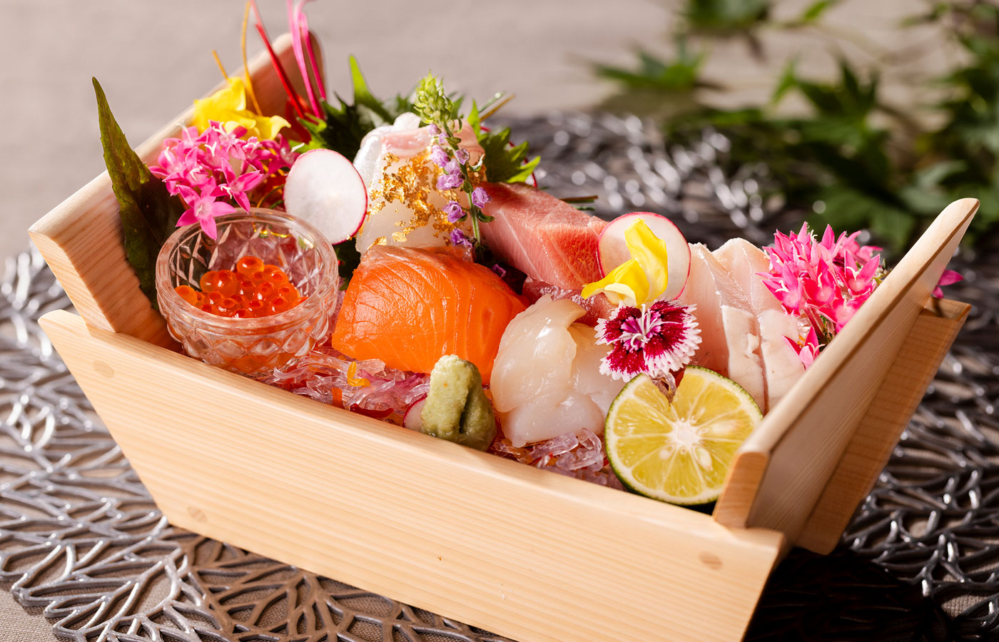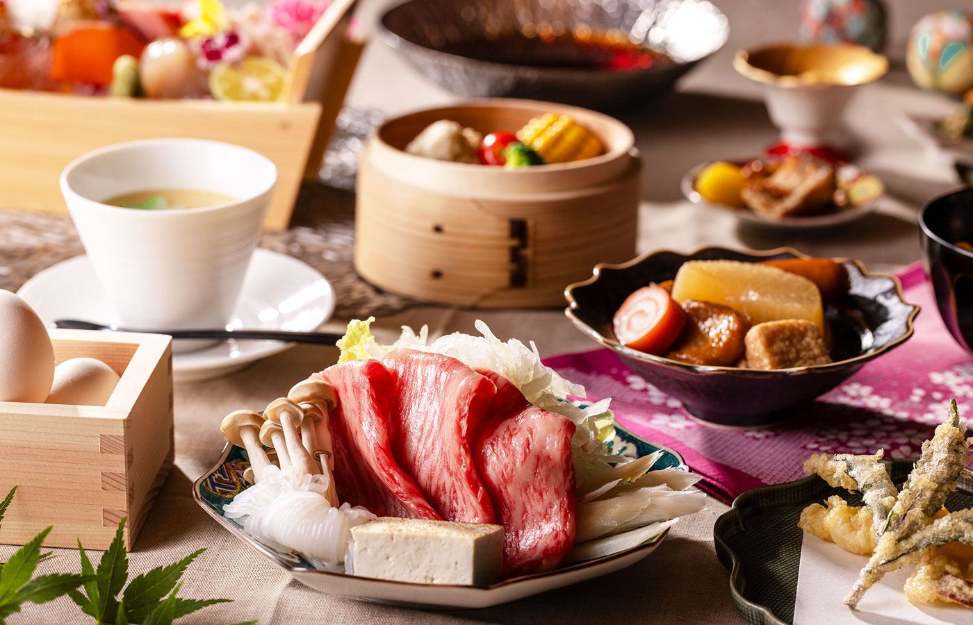 「創る会席」で海の幸や山の幸を自由に楽しむ♪ 北陸の海の幸を厳選したお造り、メインの和牛すき焼きはスタッフがお席にご用意し、