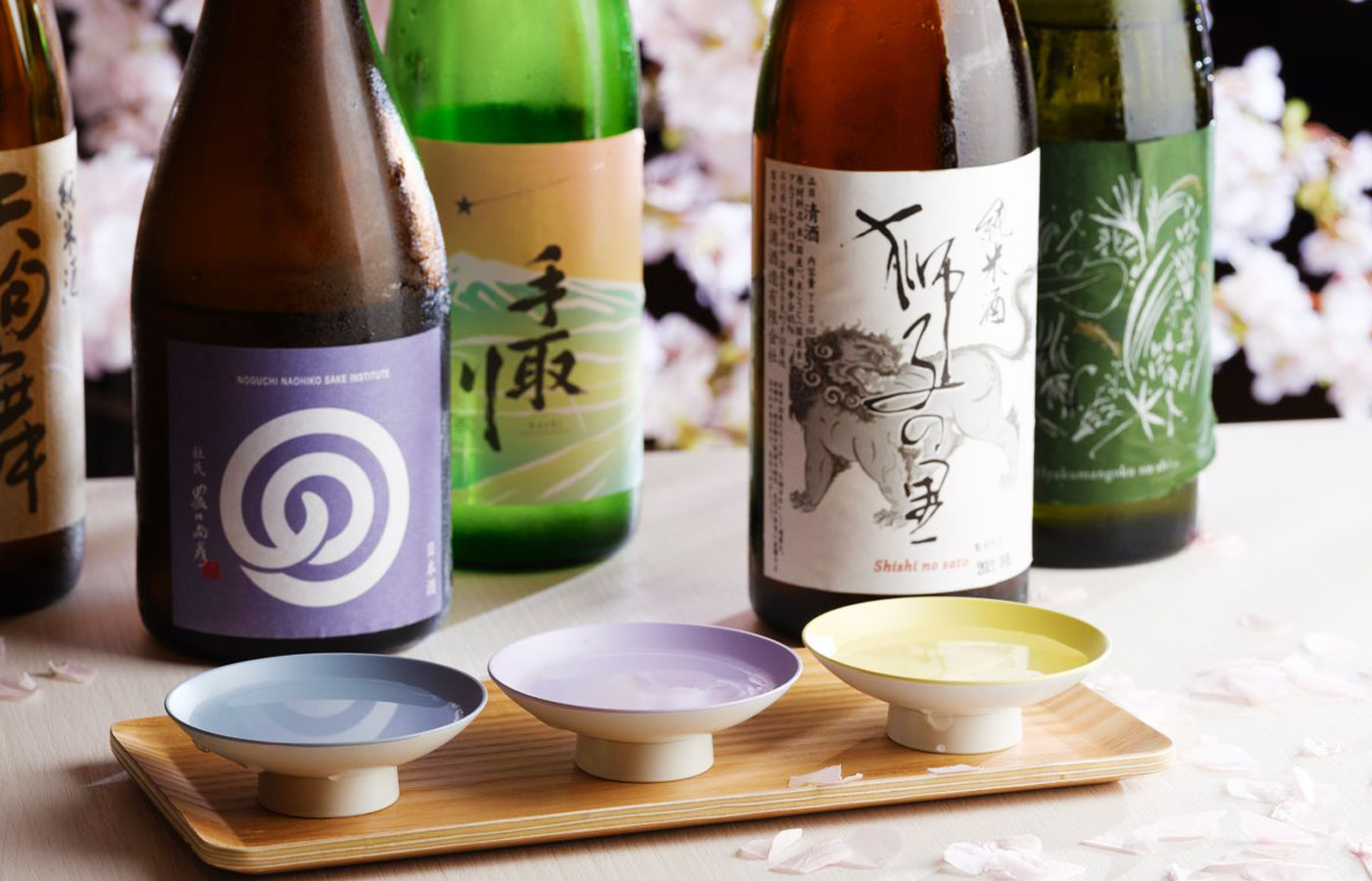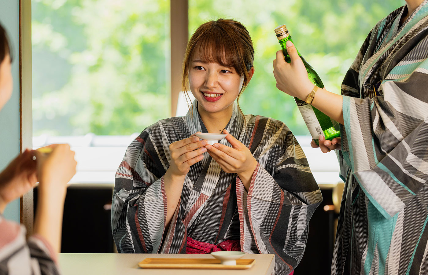 ロビー&テラス ロビーで楽しめる日本酒の飲み比べサービス♪加賀の地酒を味わってみてください。