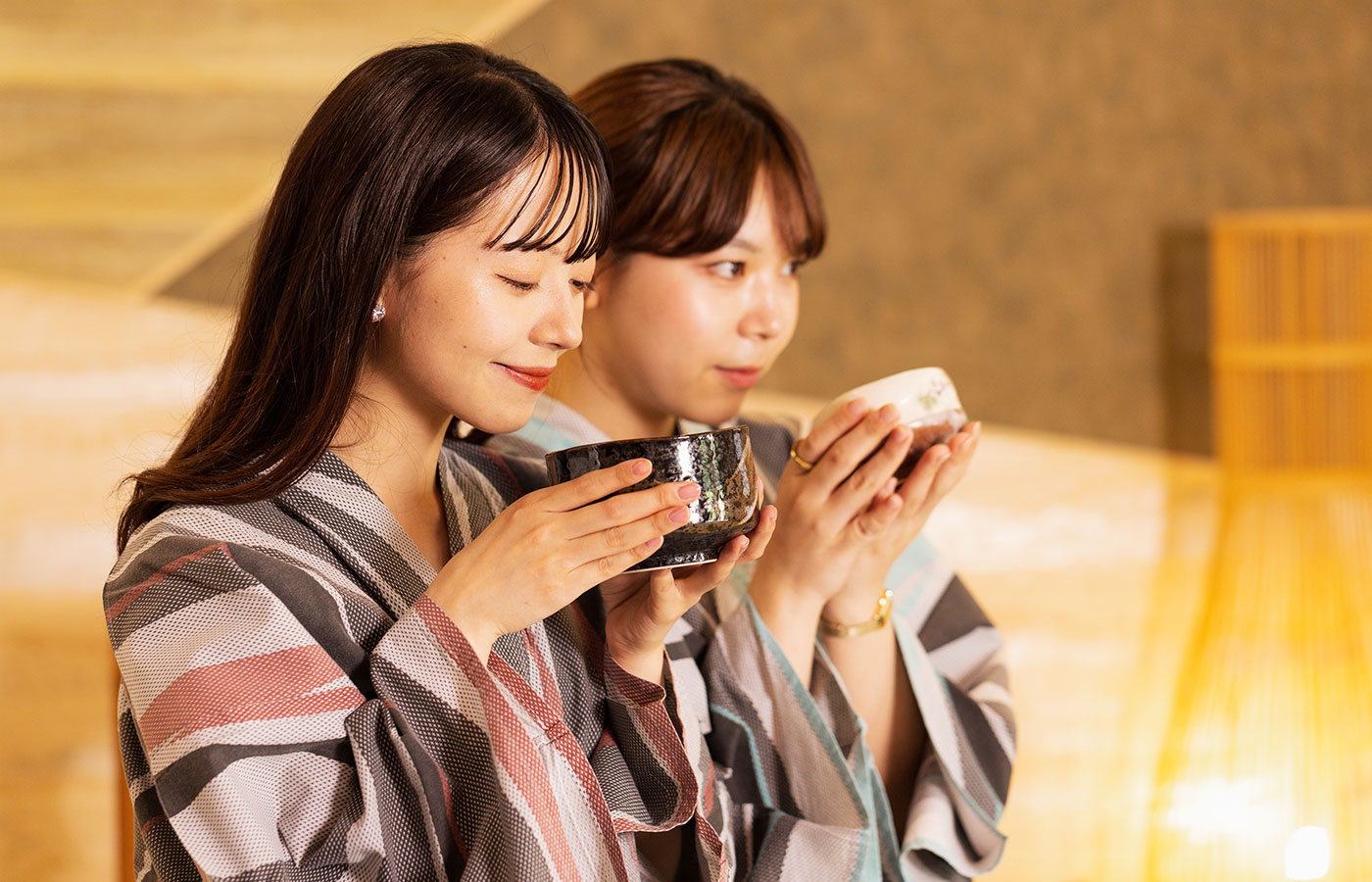 好きなお茶碗と茶筅を選んでいただいたあと、作法も自由お客様自身のスタイルで日本の伝統、ゆっくりとした時間をお楽しみください。