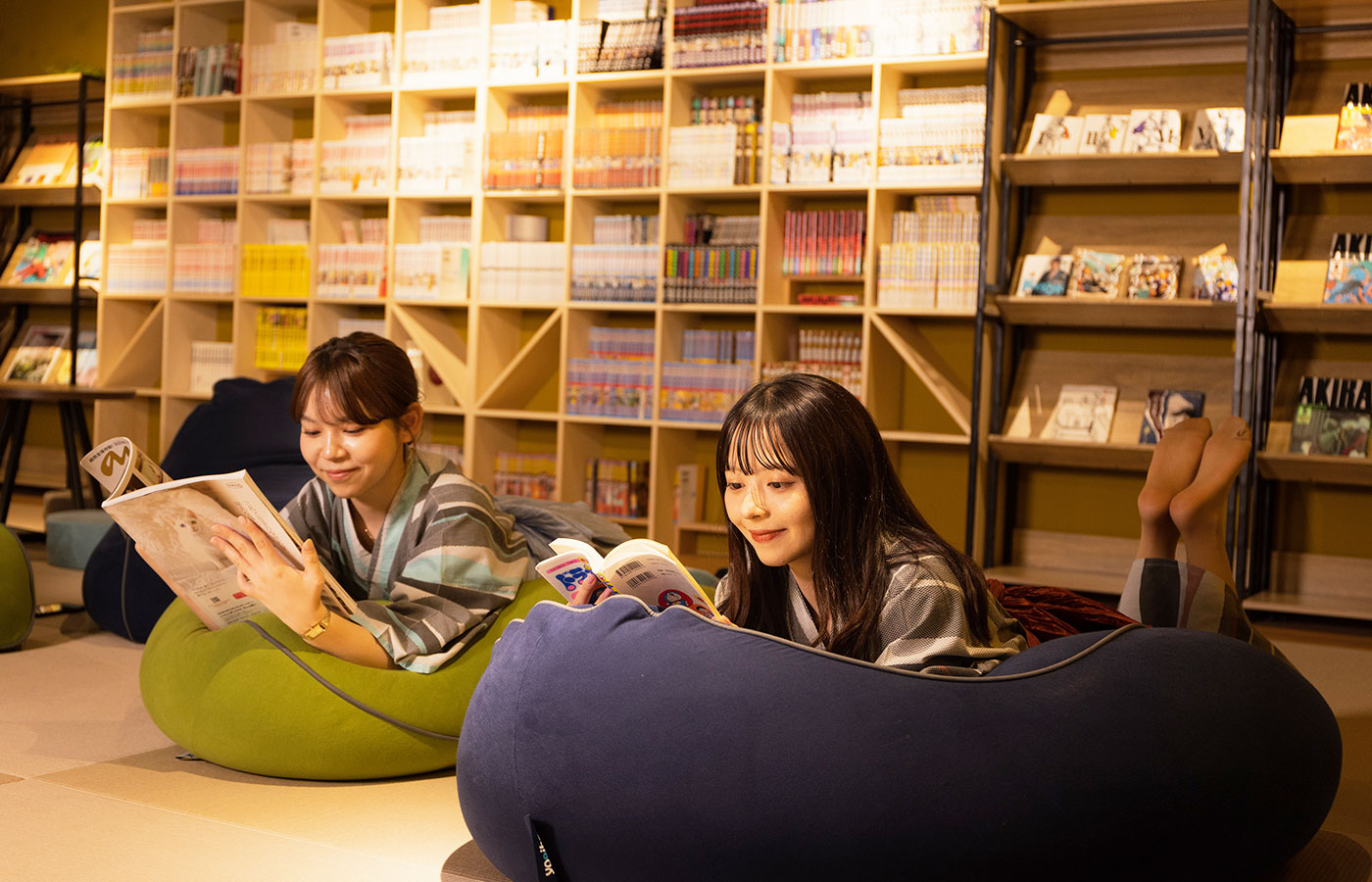 club湯座屋 約1,500のマンガや雑誌、ボードゲームなどをご夕食前後にお楽しみください。