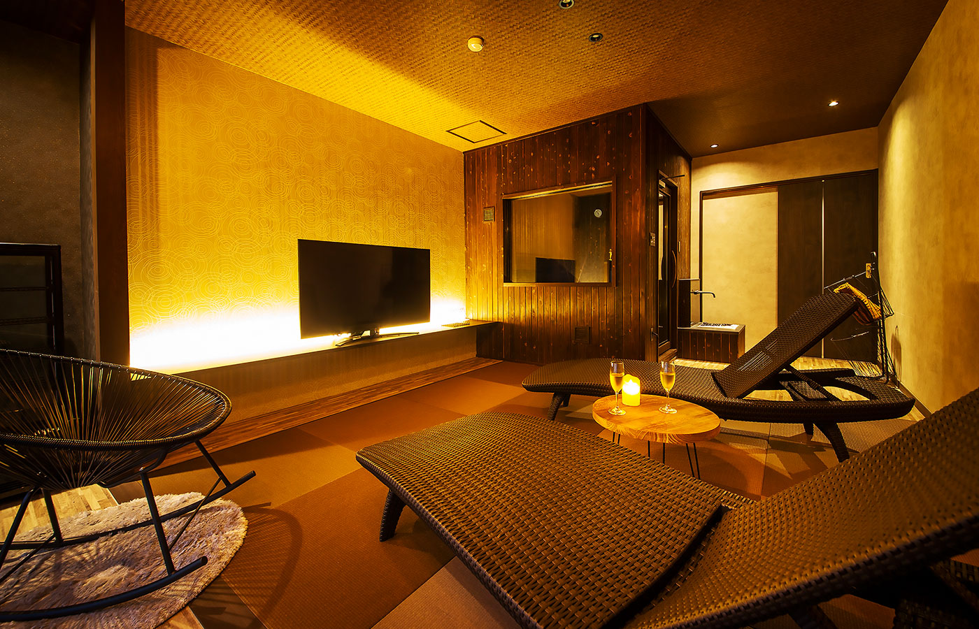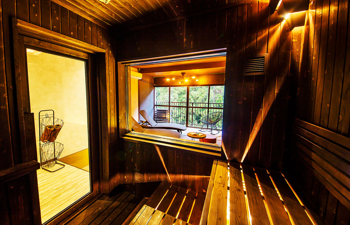 ミントの香りでリラックス。 サウナの後は、山中の大自然を眺めながら身体をゆっくりと休ませてください。TVでは、ネットフリックスやYoutubeもご覧いただけます。 お好きな音楽でお好きな時に何度でもサウナをお愉しみください。- ご利用時間